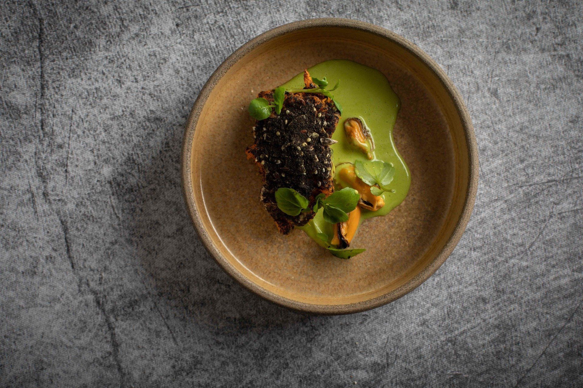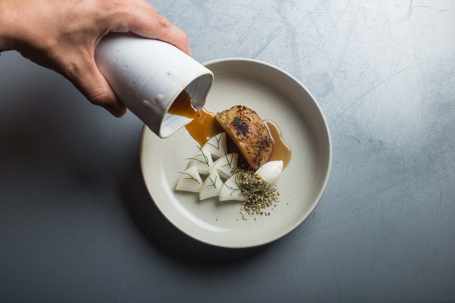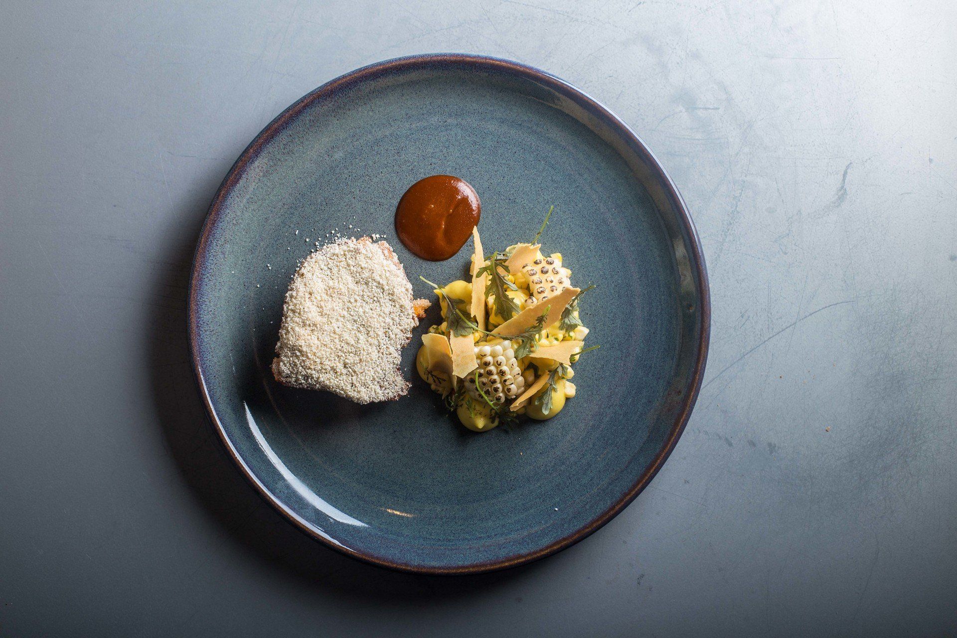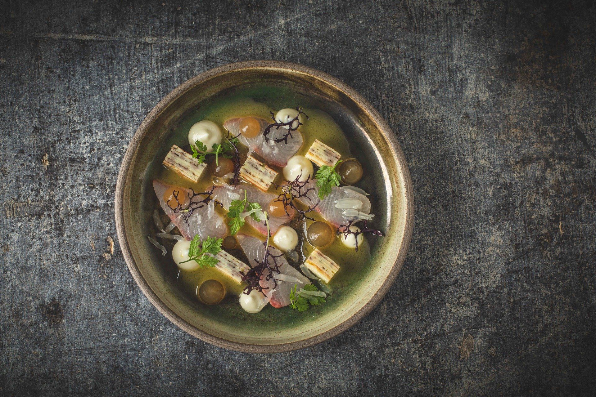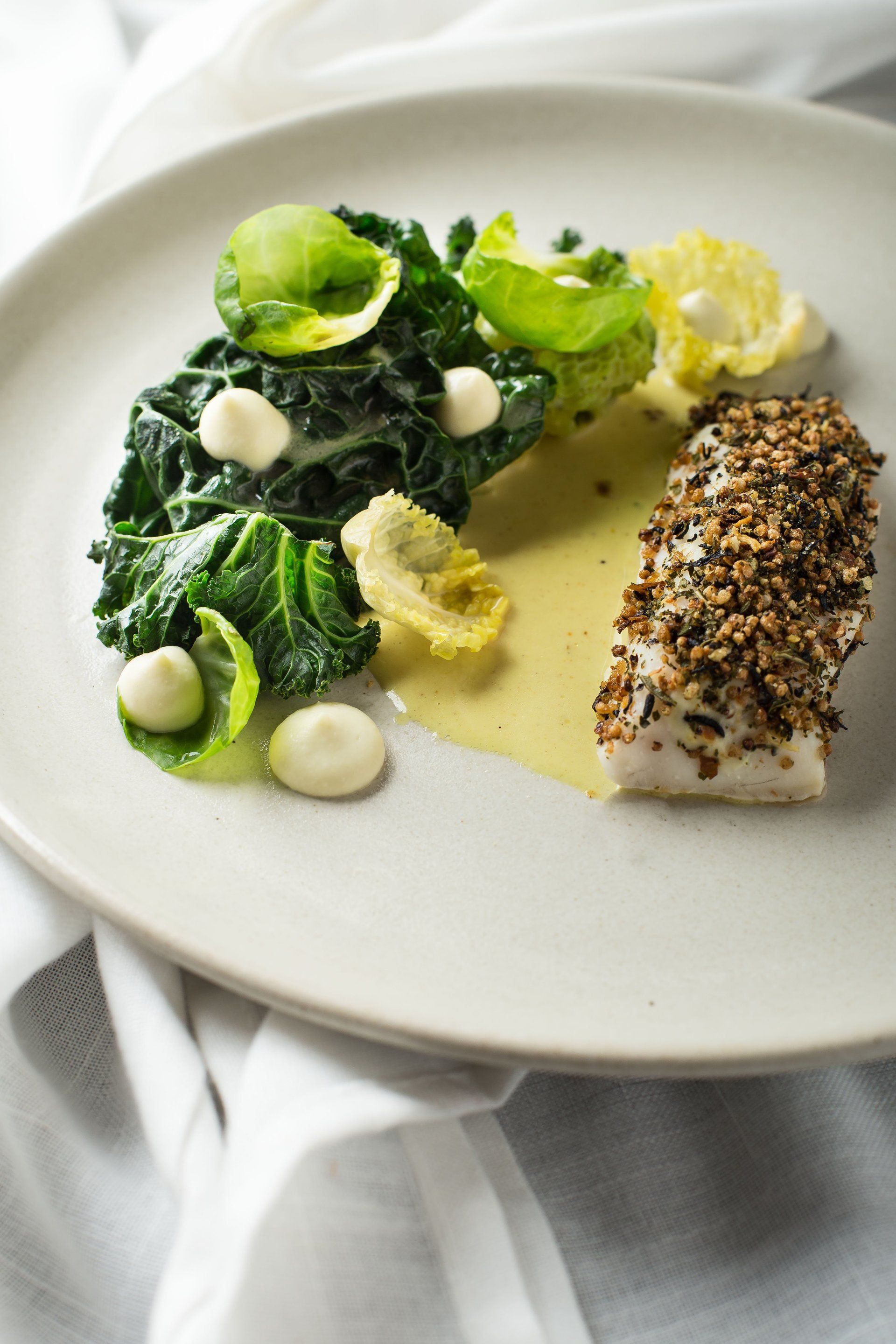 בר ים, כרוב סבוי, חמאת קארי, קראסט של כרוב, אצות וקינואה תפוחהButton