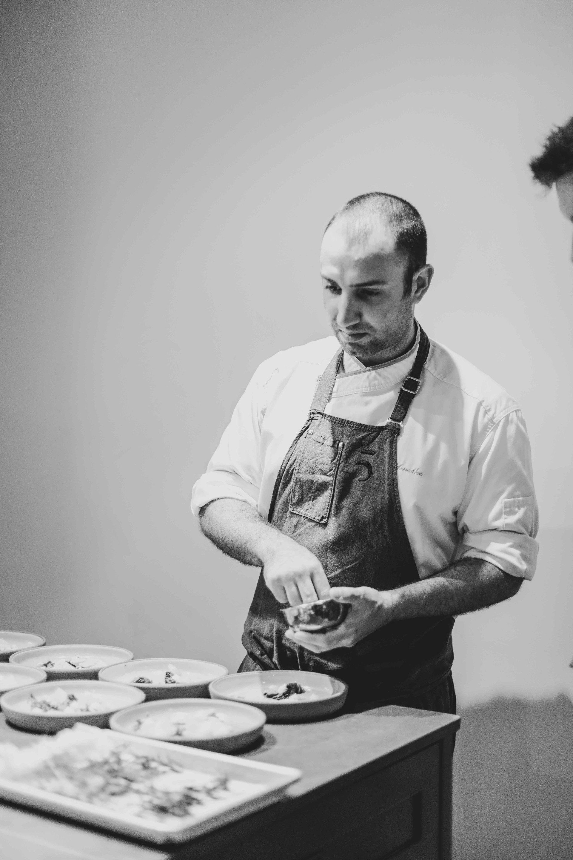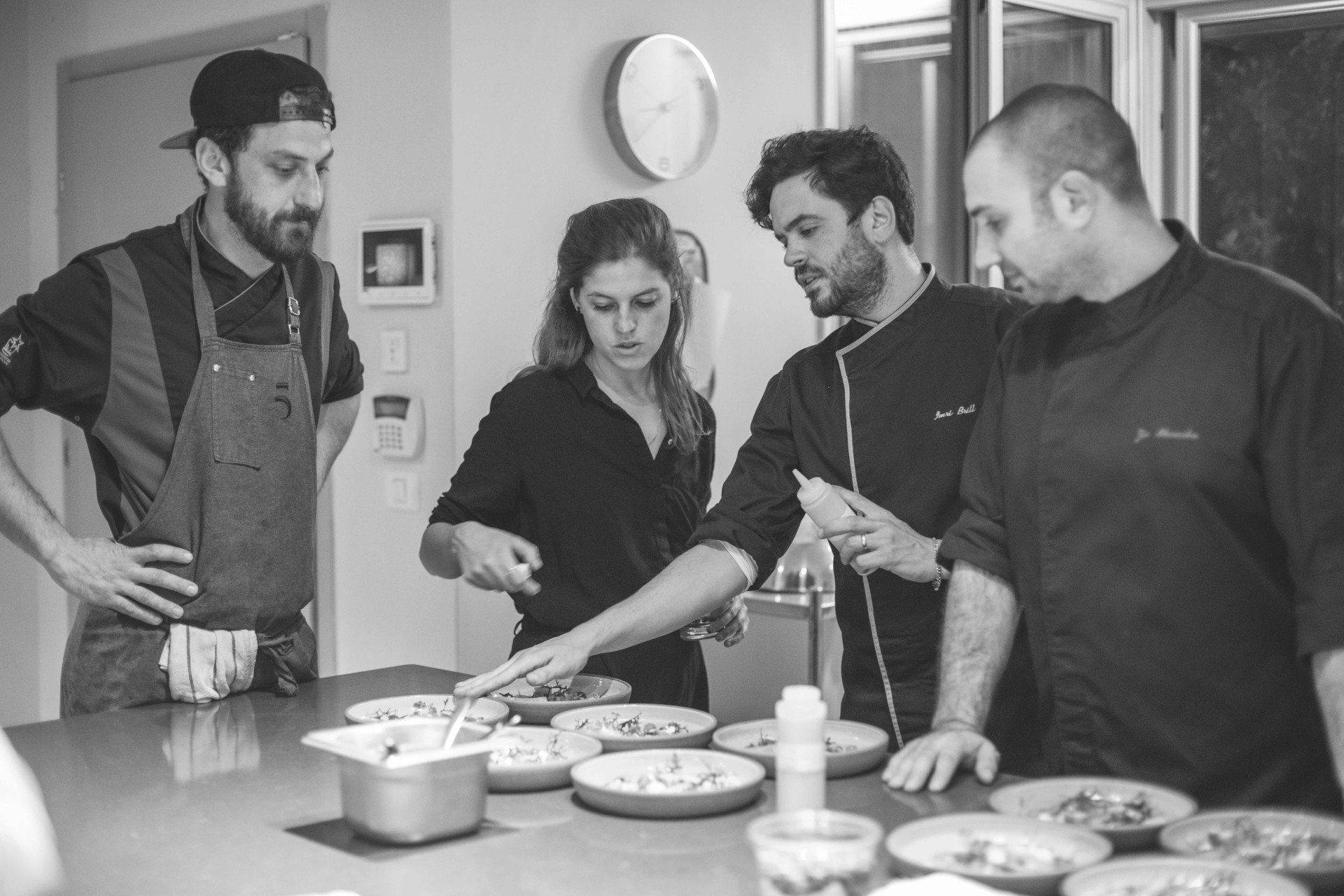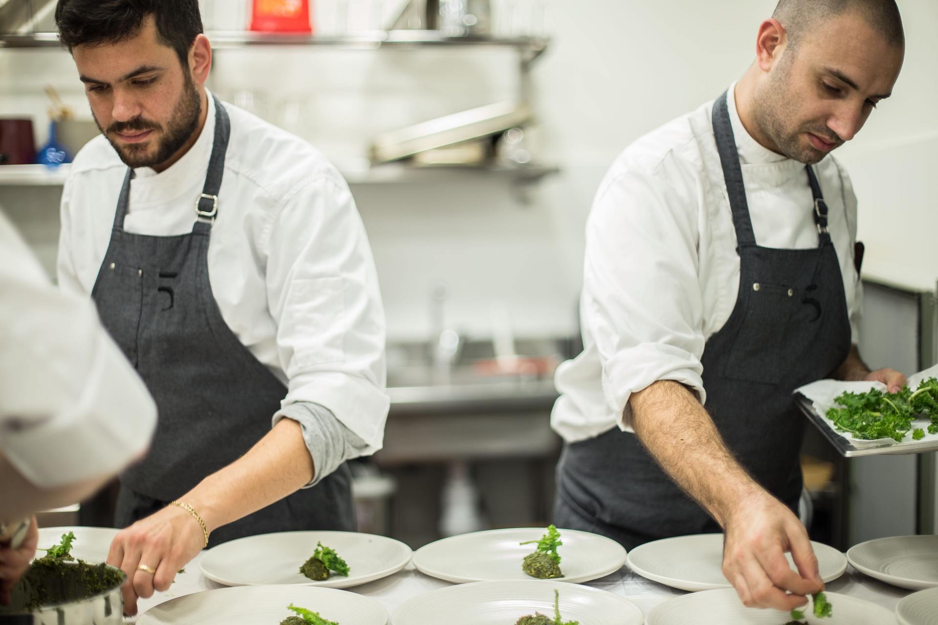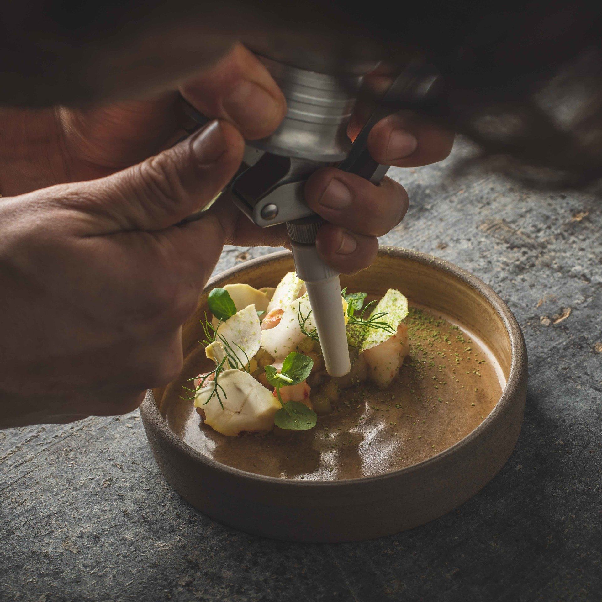 ריזוטו כוסמין, קרם קשיו ועשבים, קצף דלעת וקרמבל של כוסמין ושמרי בירה