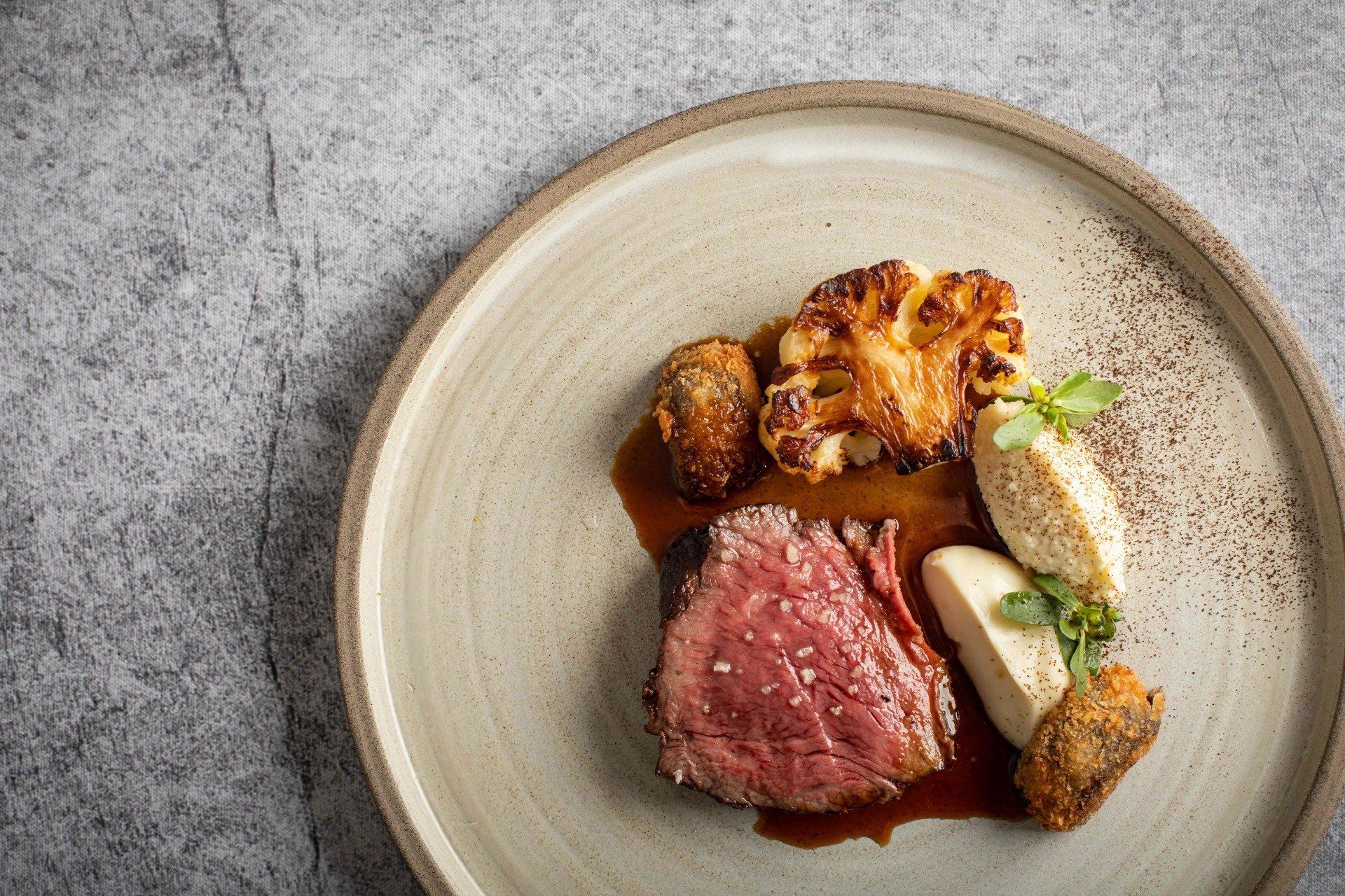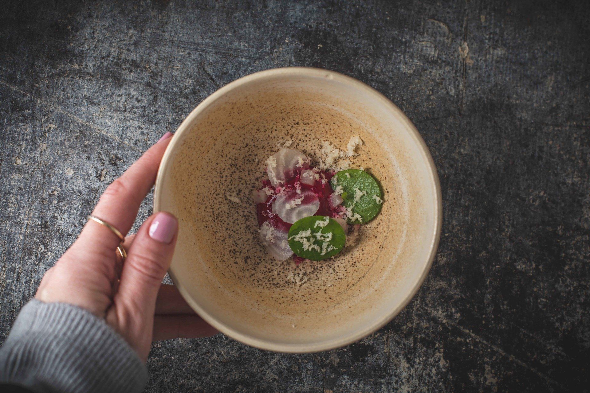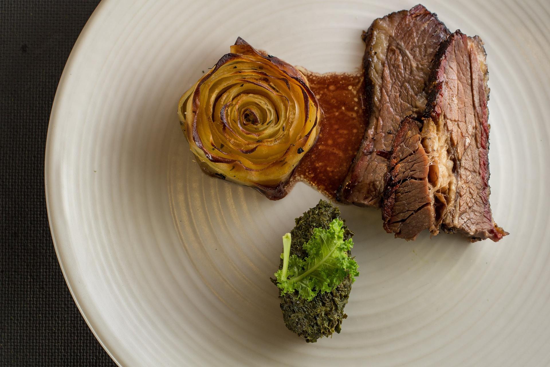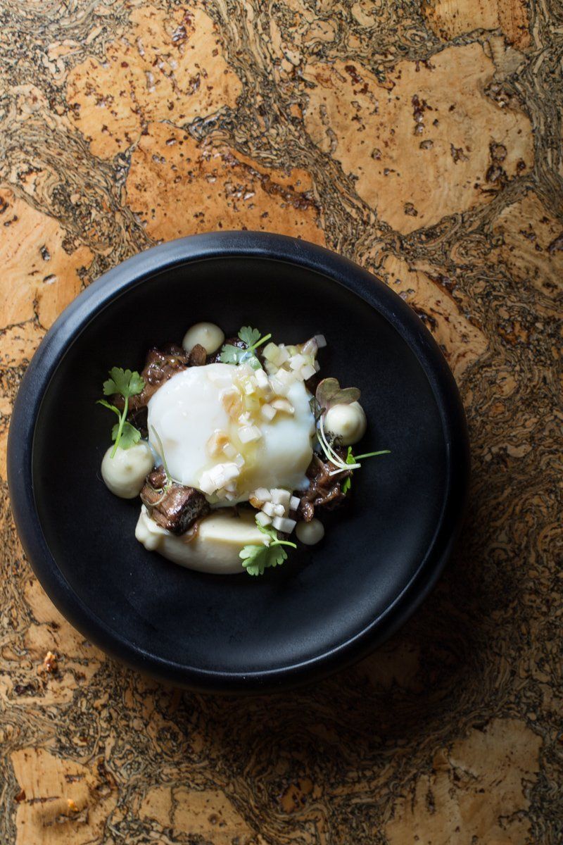 זנב שור, ביצה מושלמת, ויניגרט שורשים ואגוזי מלךButton