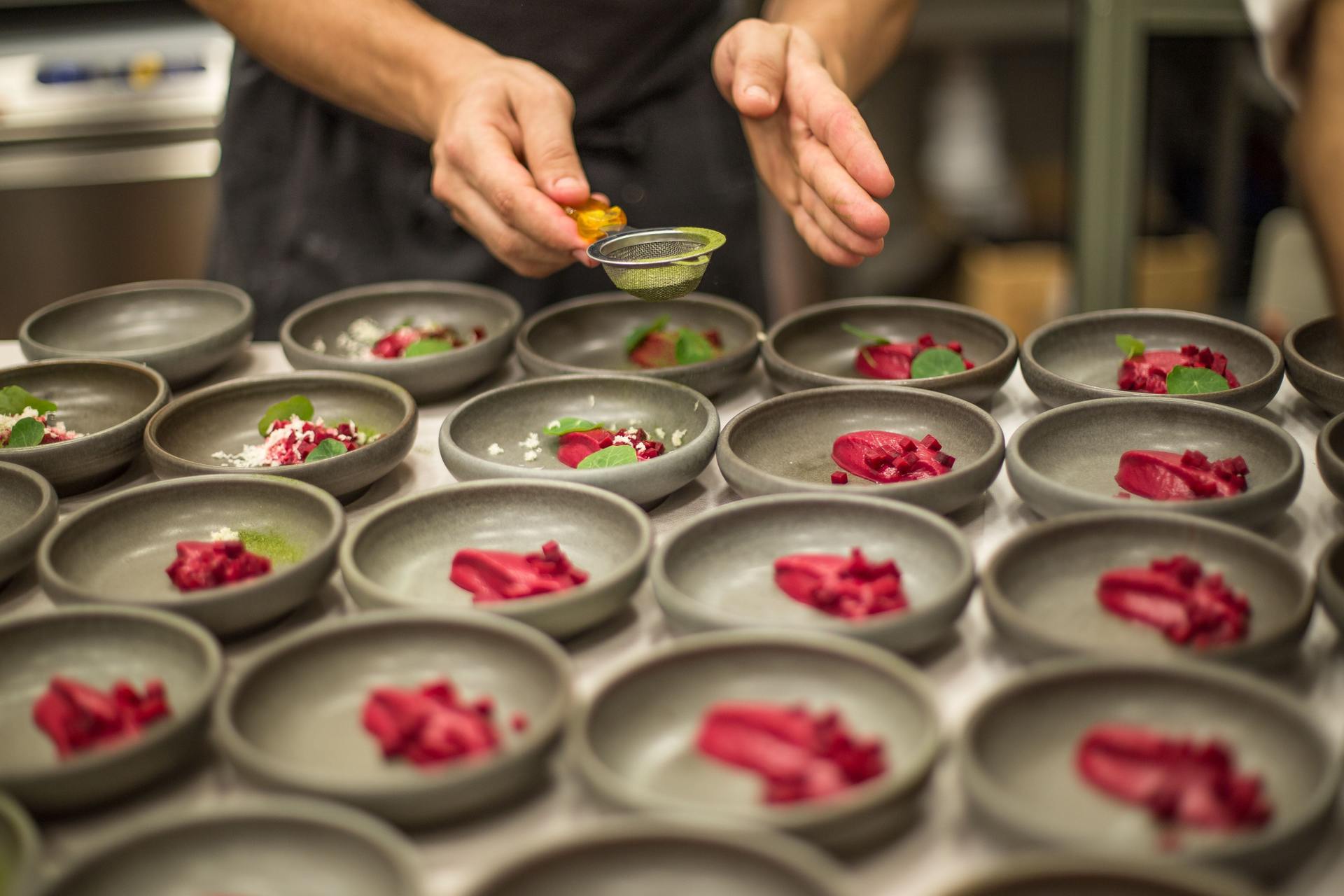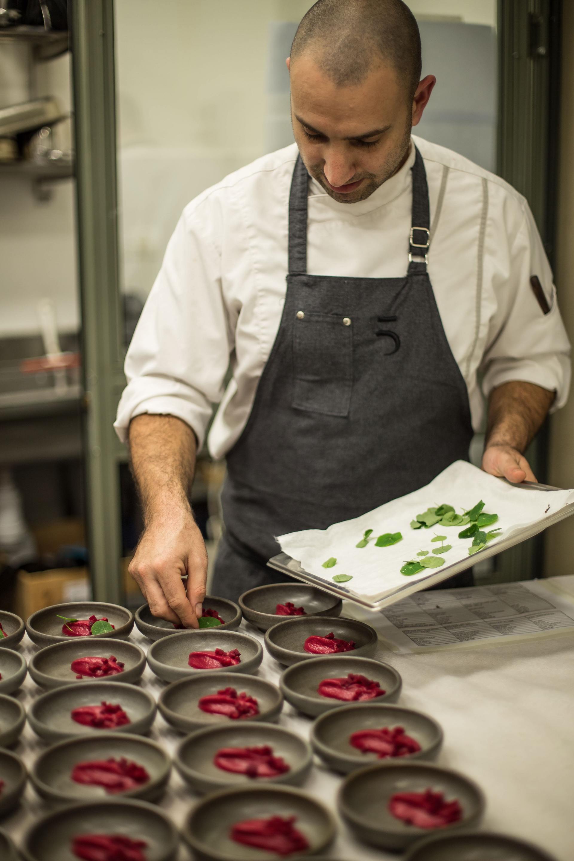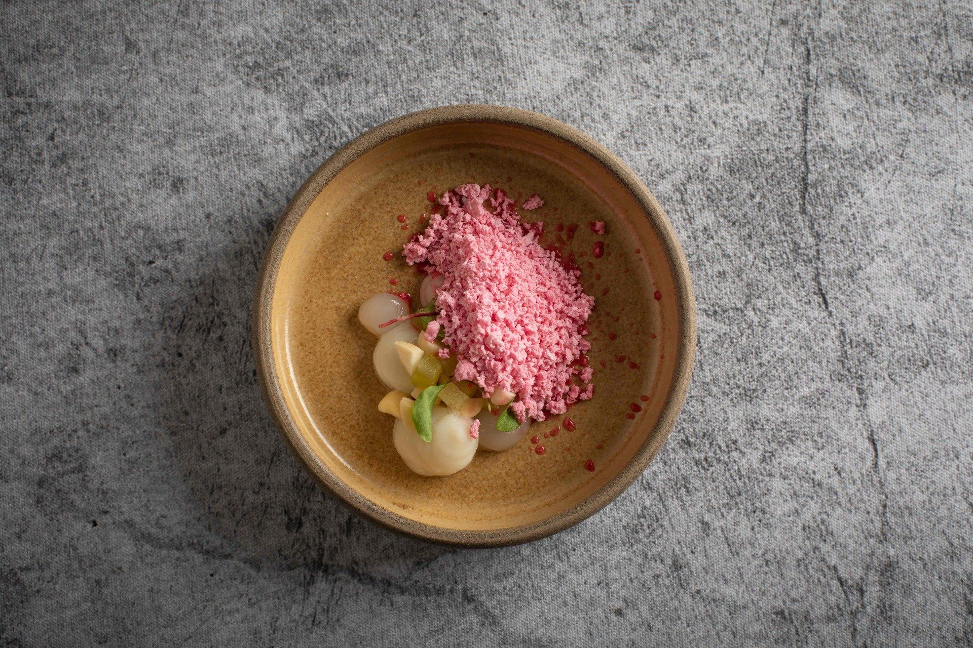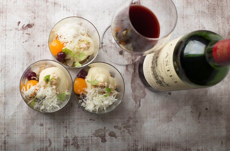 זנב שור, ביצה מושלמת, ויניגרט שורשים ואגוזי מלךButton