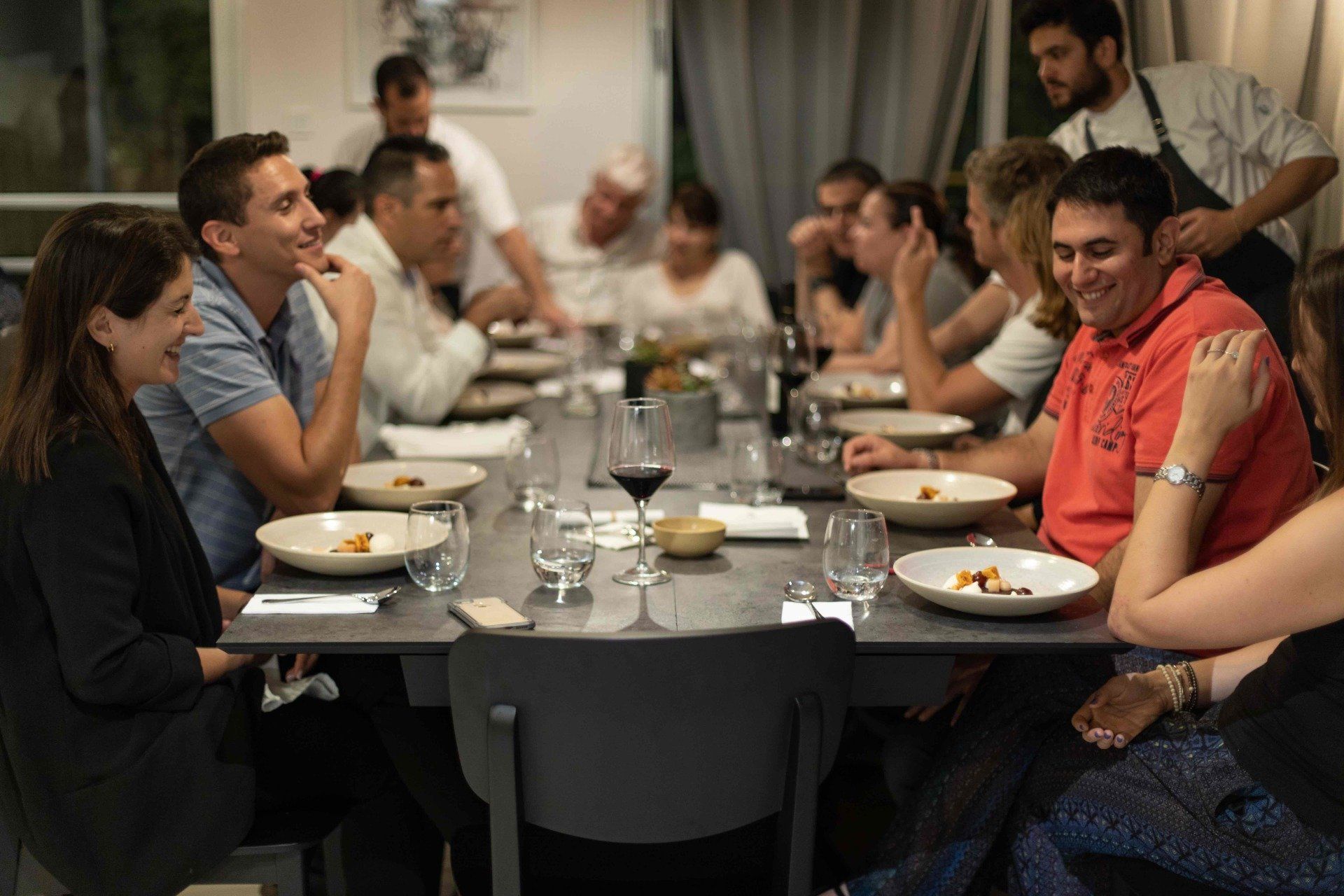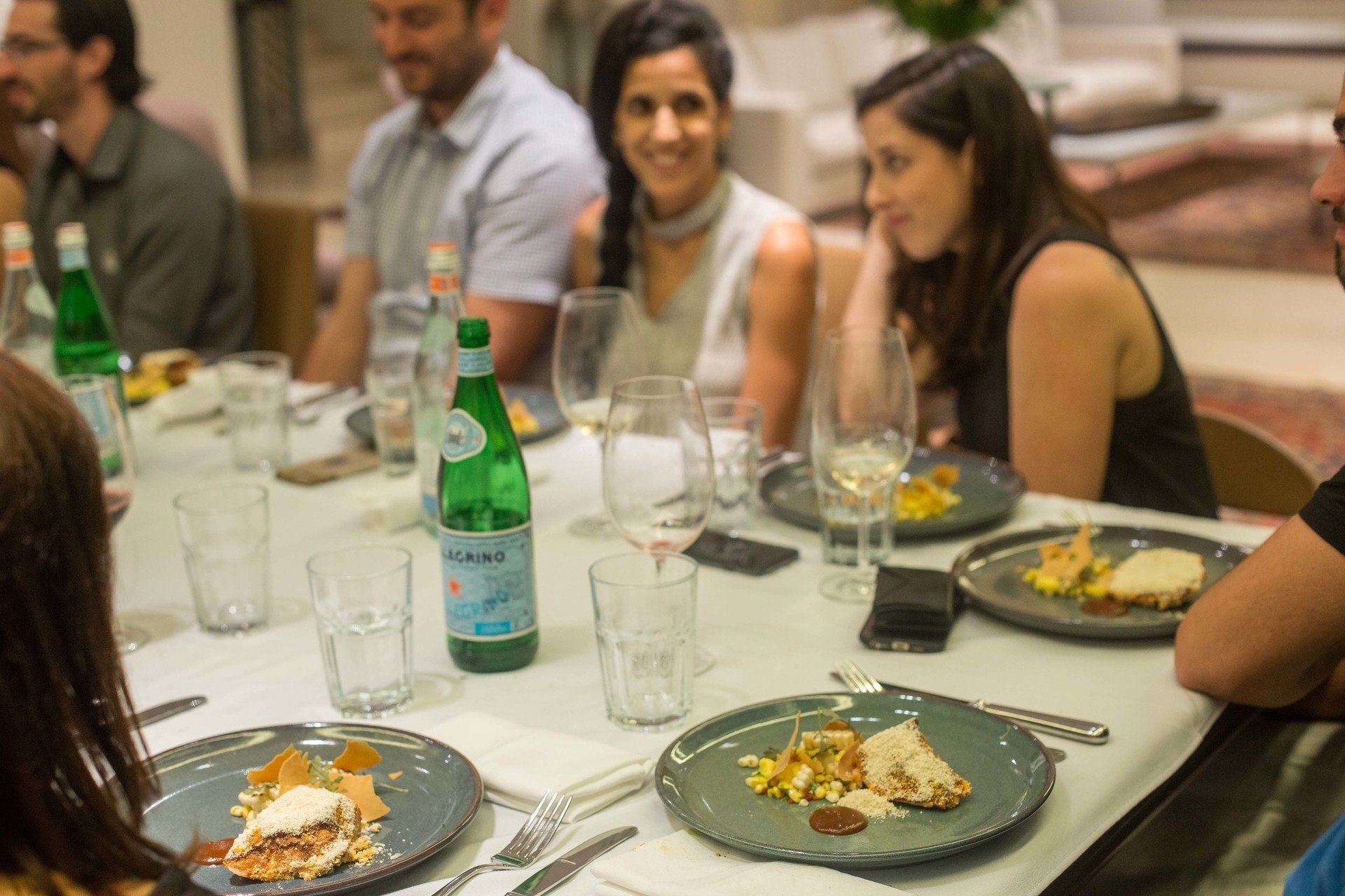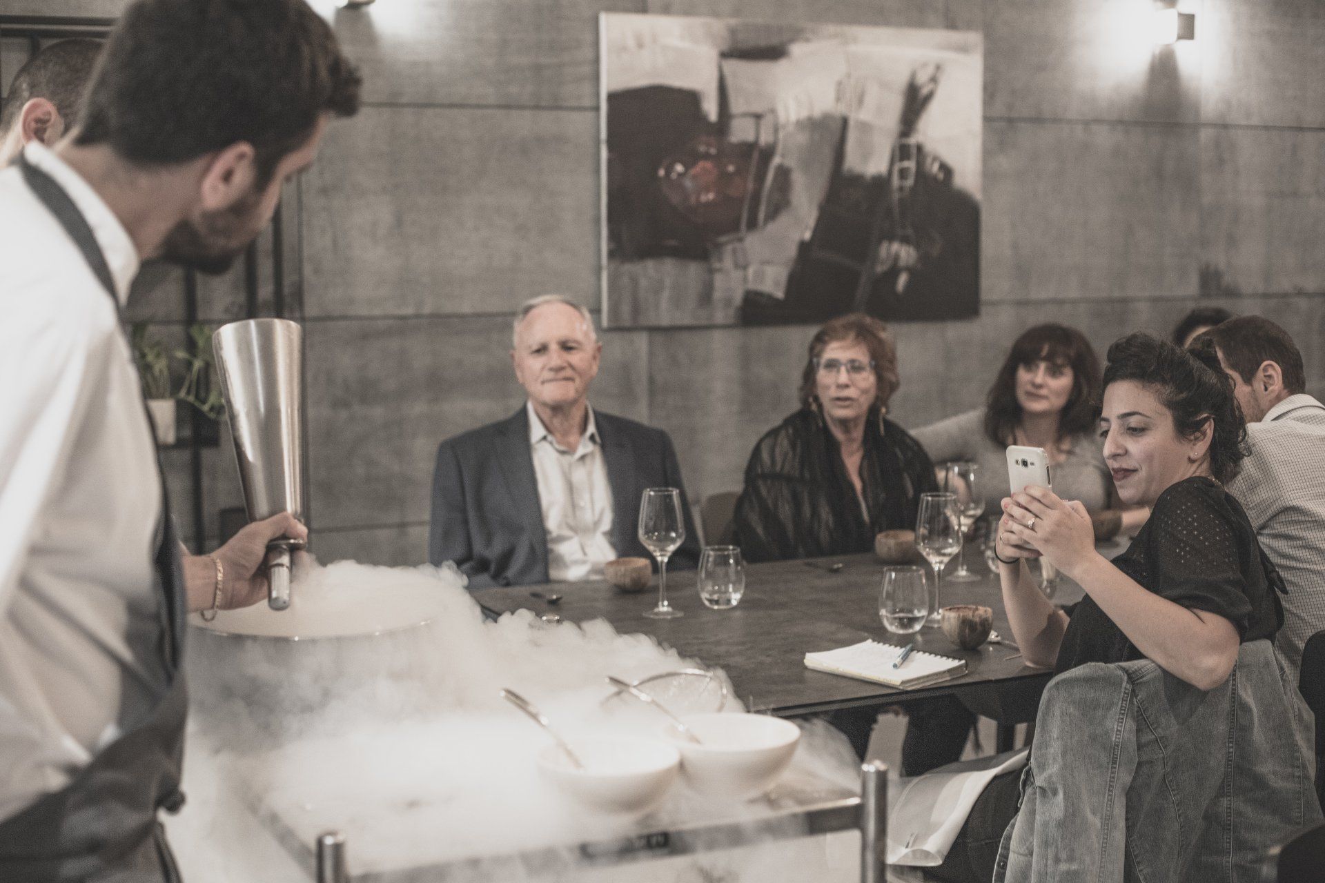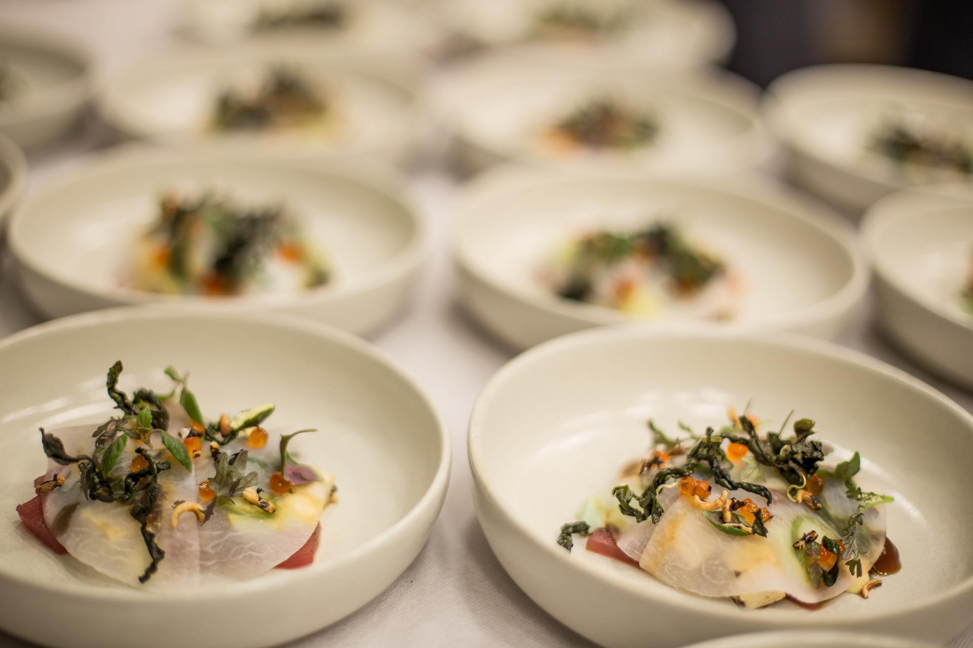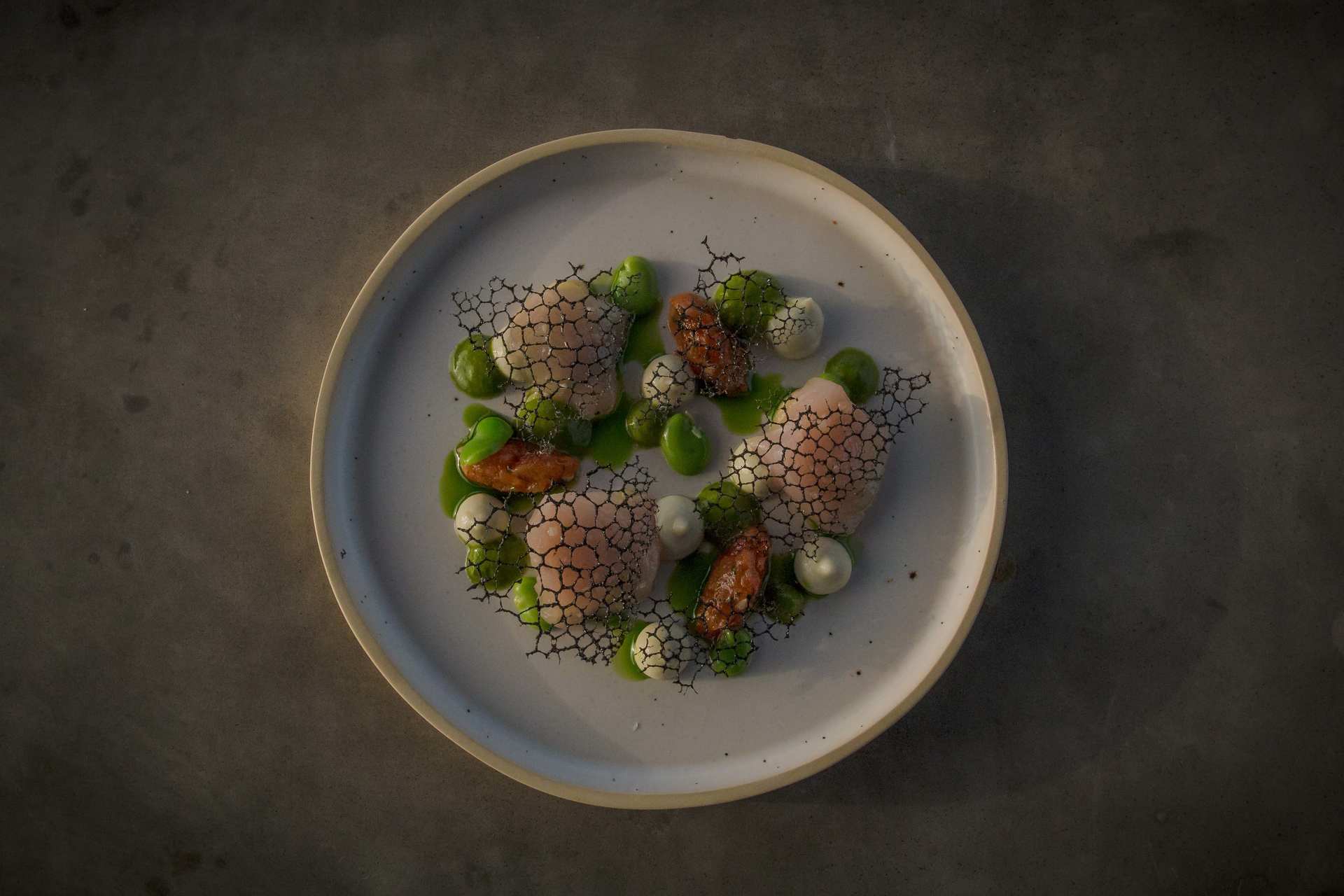 סשימי אינטיאס, חציל שרוף, פונדו עגבניות, פול ירוק, גרגיר נחליםButton