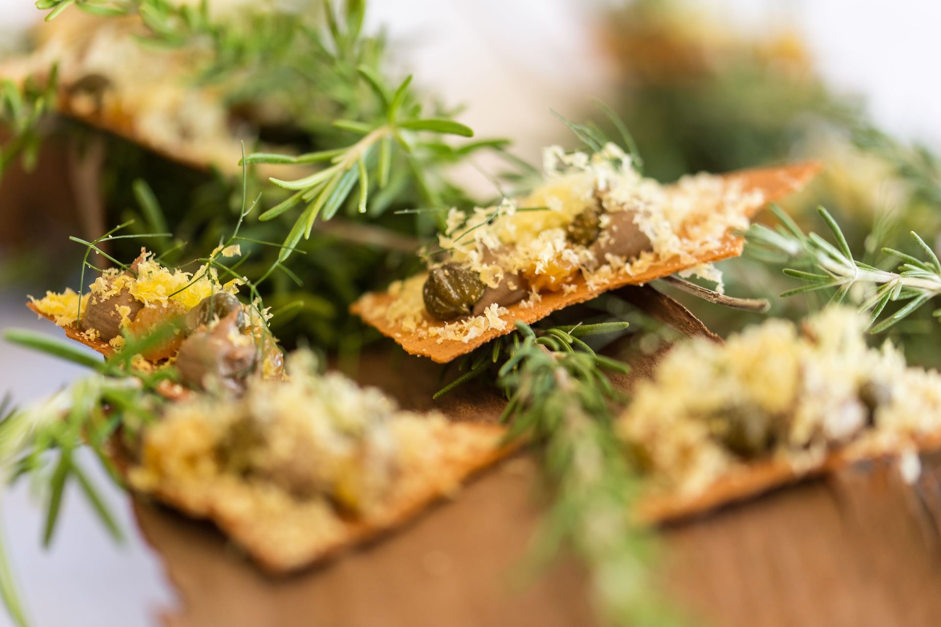 קרקר עוף ודואה, כבד ברווז, חלמון כבוש וצימוקים מושרים בייןButton