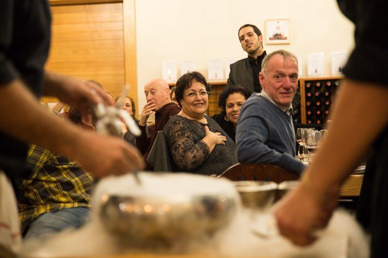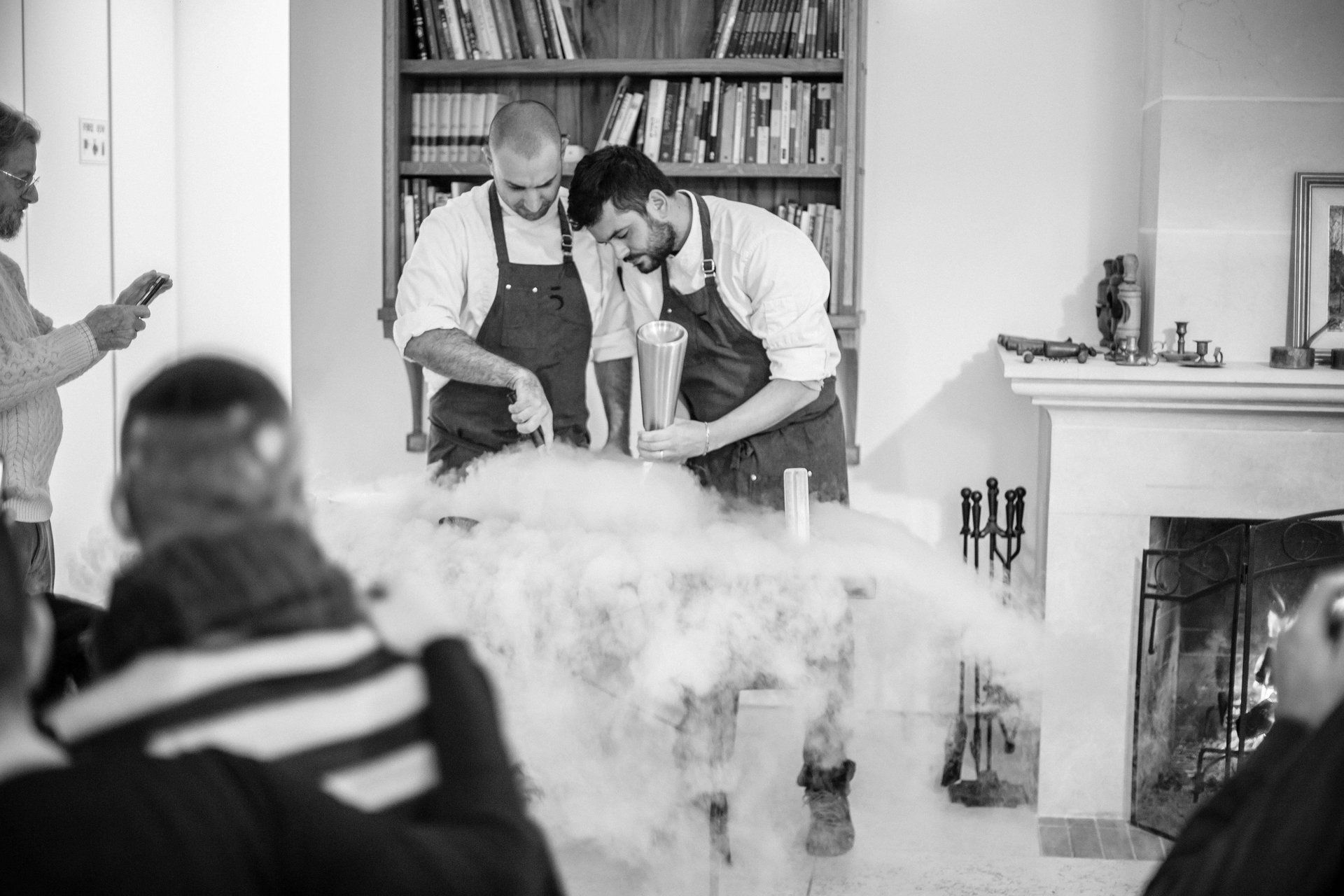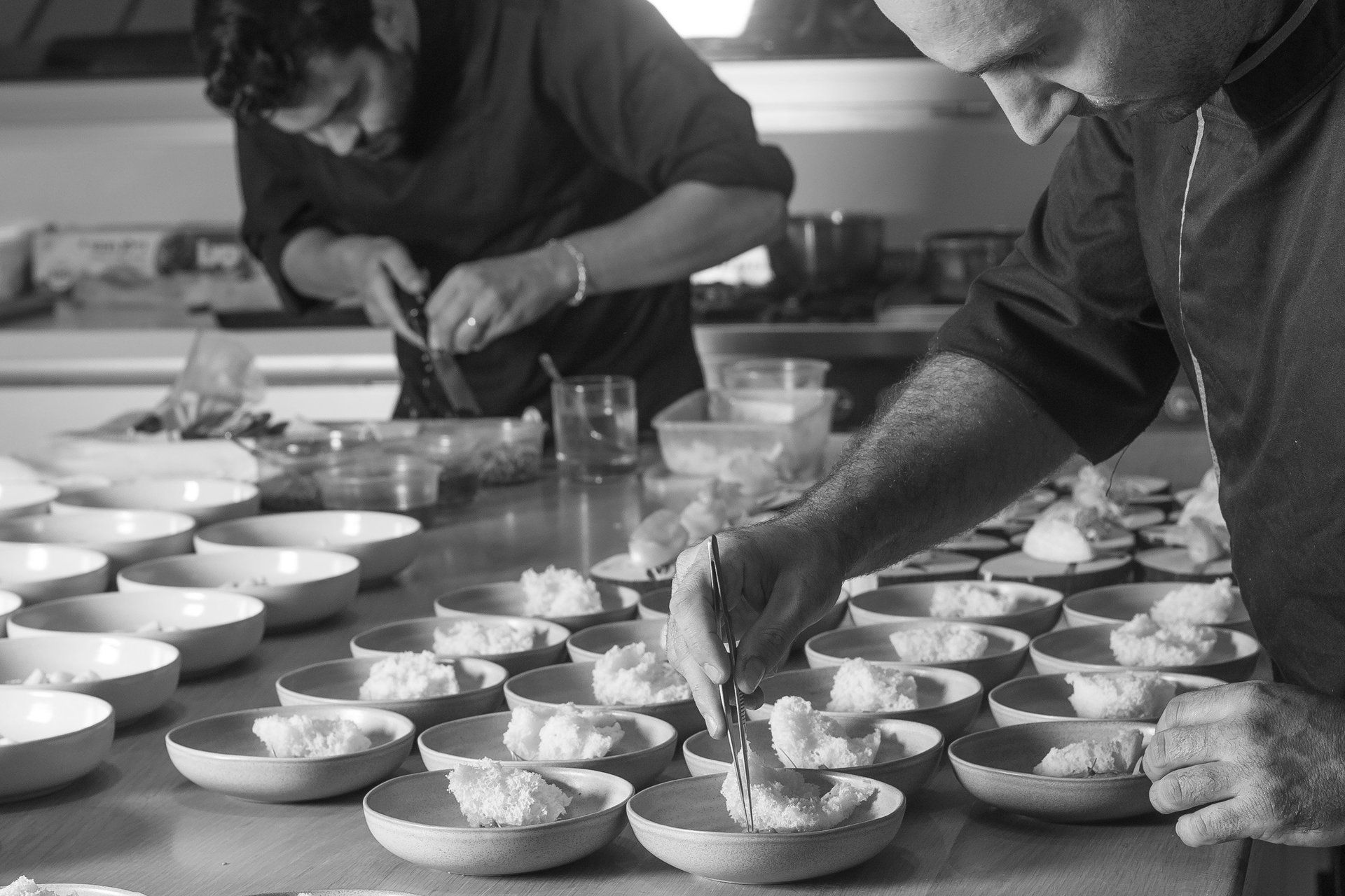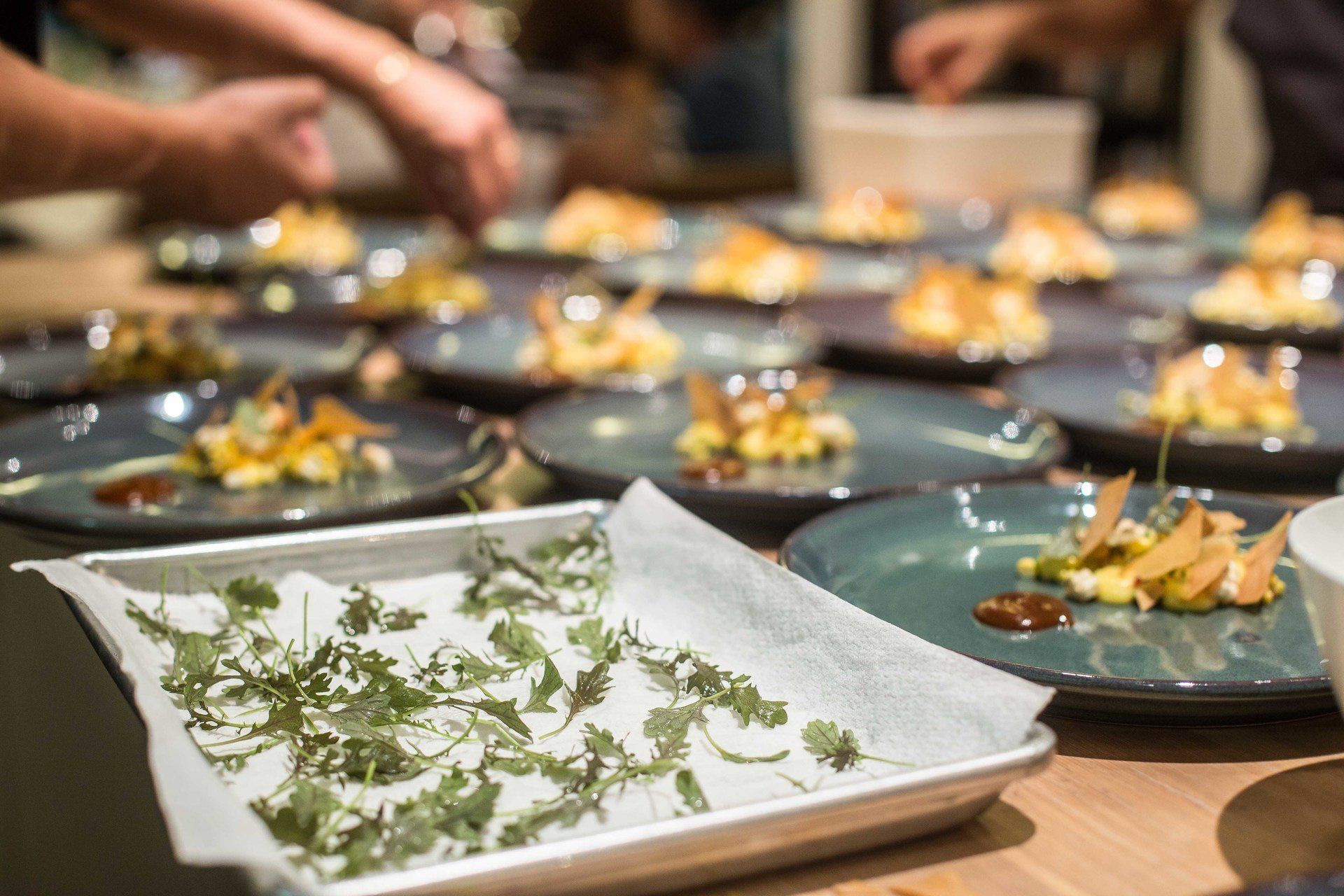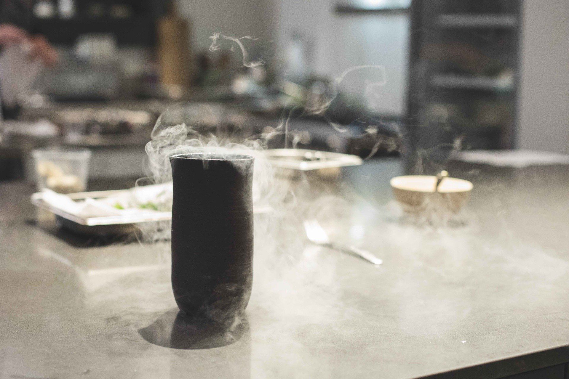 בליני סולת, קרם גזר, פטריות ירדן מעושנות, חלמון כבוש