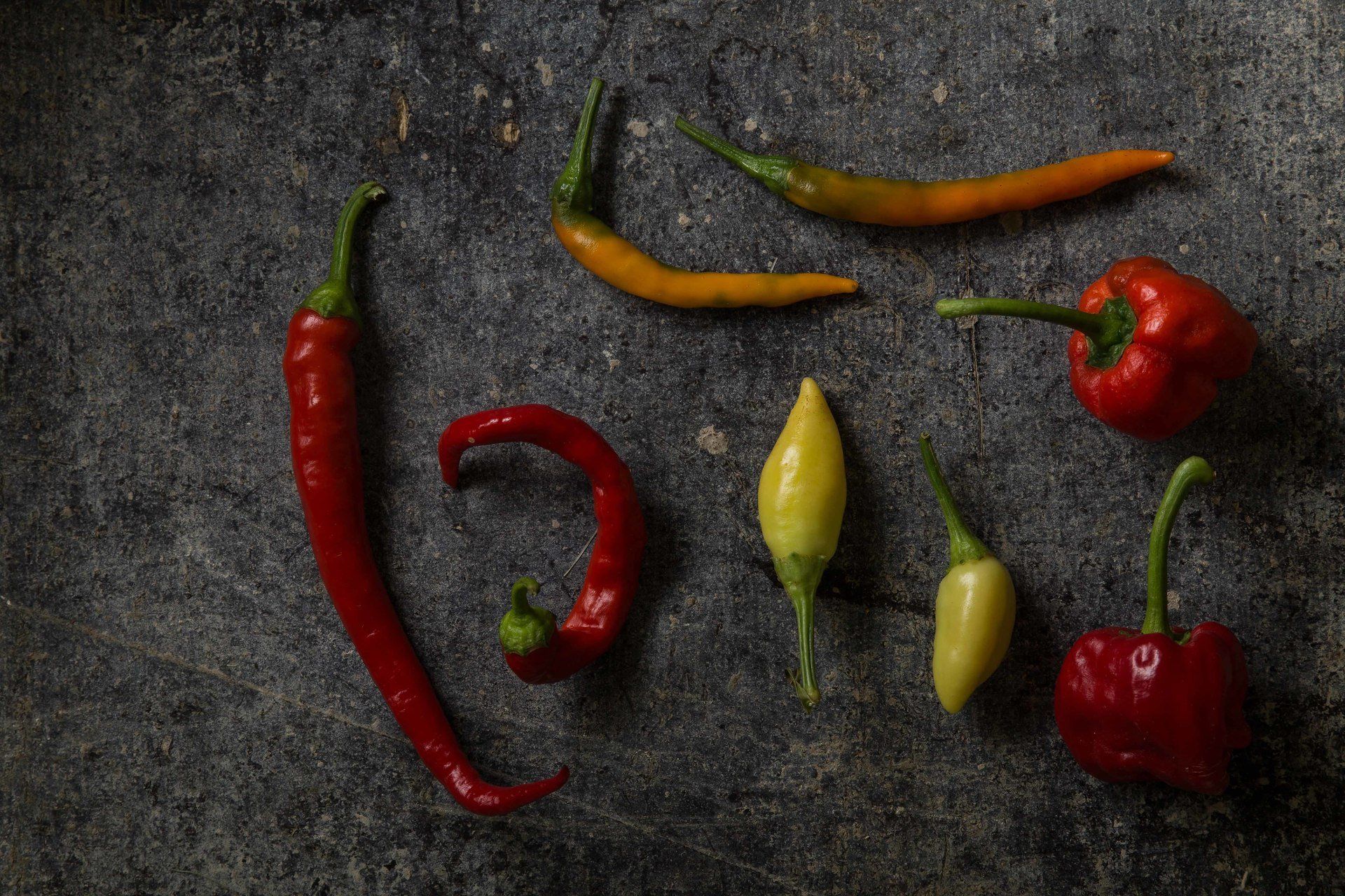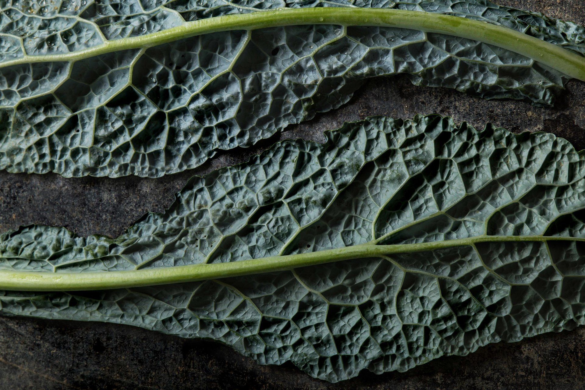 פורל מעושן, קייל, אגוזי לוז, צ'יפס יובה ותבלינים, רוויון ושמן חרדל