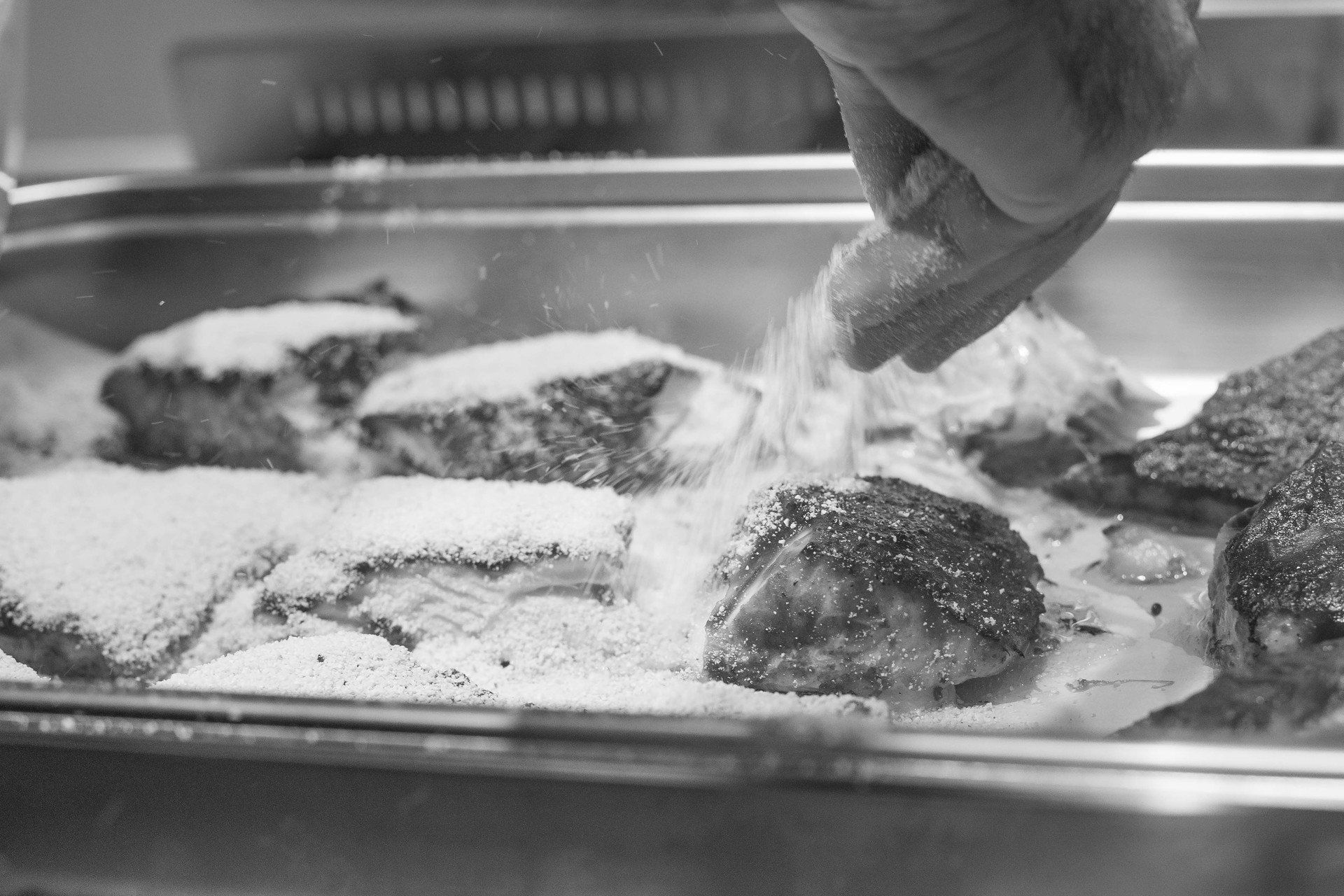 חרימה - בר ים חצי נא, קרם חרימה, ספונג' שמן זית, אבקת לימון פרסיButton